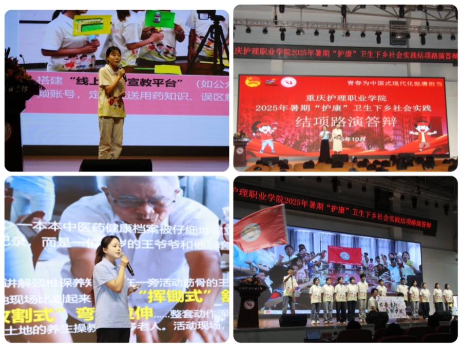 10月9日下午,我校2025年暑期“护康”卫生下乡社会实践项目结项路演答辩会在至善楼406报告厅举行。校领导郑泽莉、谢莉玲、唐全、刘光维与相关部系负责人、指导教师及学生代表参加活动。璧山区社会工作部副部长姜虹应邀出席。