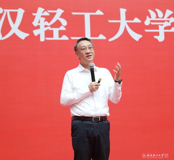 课程伊始,严冀钢通过播放学校宣传片,帮助同学们全面、客观地了解学校的办学概况、特色与优势,进一步加深对“轻工大”的初印象,激发爱校荣校的情感共鸣。严冀钢指出,大学不仅是同学们生活、学习和发展的全新转折点,也是学习生涯与工作生涯的连接点,更是找准人生赛道的出发点,承载着学业进步与人生发展等多重课题。他强调,大学最重要的事情是学会思考——思考新时代怎么“新”、大变局怎么“变”、现代化怎么“化”等重大命题。要在世界百年未有之大变局中,深化对以中国式现代化推动构建人类命运共同体的认识,为实现中华民族伟大复兴挺膺担当。他鼓励同学们在历史的演进中找寻人生的坐标,在社会的演进中找寻前进的方向,将学业、专业、职业与产业、企业、行业紧密对接,将论文写在百姓的餐桌上,融入人民群众对美好生活的向往中,自觉把个人成长汇入学校高质量发展进程,投身于湖北加快建成中部地区崛起重要战略支点的生动实践。