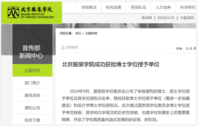 今年8月,北京服装学院官宣成功获批博士学位授予单位。博士点是评判一所高校在某个领域办学实力如何的重要参考。据官网介绍北服的设计学和艺术设计在教育部第五轮学科评估及全国专业学位水平评估中,设计学排名前3%-7%,艺术设计排名前3%。