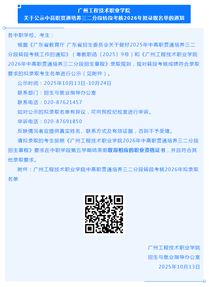 【三二分段】关于公示中高职贯通培养三二分段转段考核2026年拟录取名单的通知