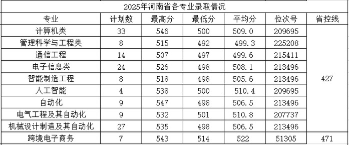 2025年河南省各专业录取分数线