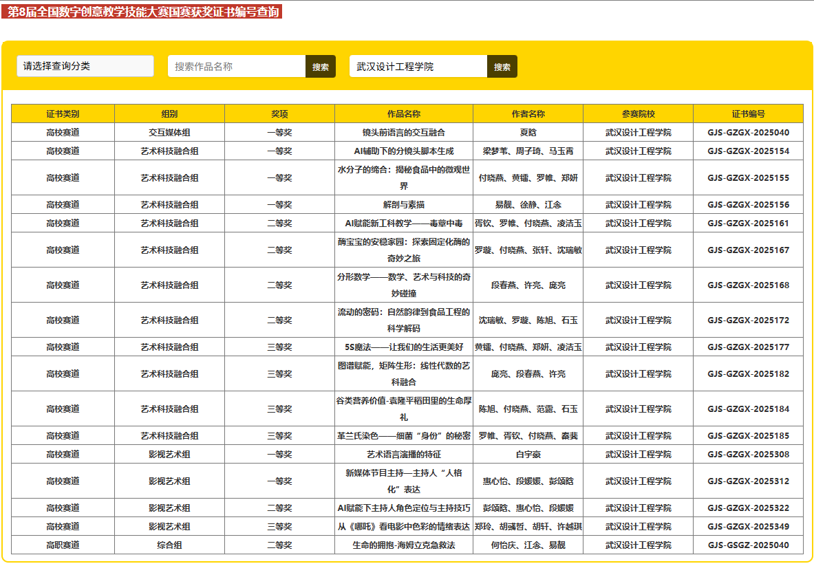 本网讯(通讯员 郑格格)近日,第八届全国数字创意教学技能大赛(国赛)评选结果揭晓。我校入围全国总决赛的17个教师团队表现卓越,成绩斐然,共荣获一等奖6项、二等奖6项、三等奖5项,实现参赛团队100%的获奖率,在获奖等级与数量上均取得历史性突破。