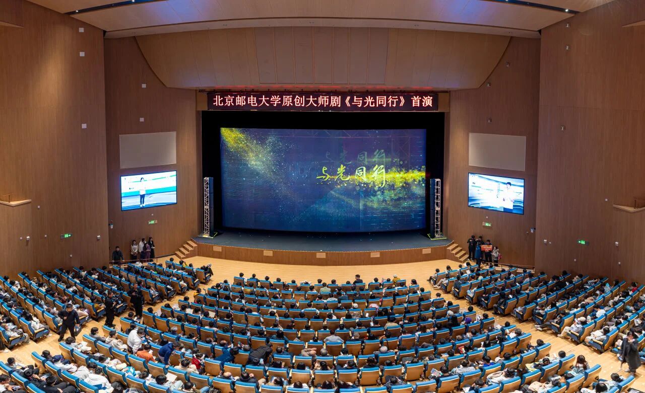 为庆祝北京邮电大学建校70周年、纪念叶培大先生诞辰110周年,北京邮电大学精心创排大师剧《与光同行》,并于10月11日在沙河校区礼堂成功首演。党委书记续梅,校长徐坤,党委副书记曲昭伟,副校长孙洪祥、任雄飞,党委副书记马启华,学校老领导代表,叶培大先生家属代表,以及来自团中央、团市委、中国科协、兄弟高校的领导嘉宾、师生代表等千余人共同观看首场演出。