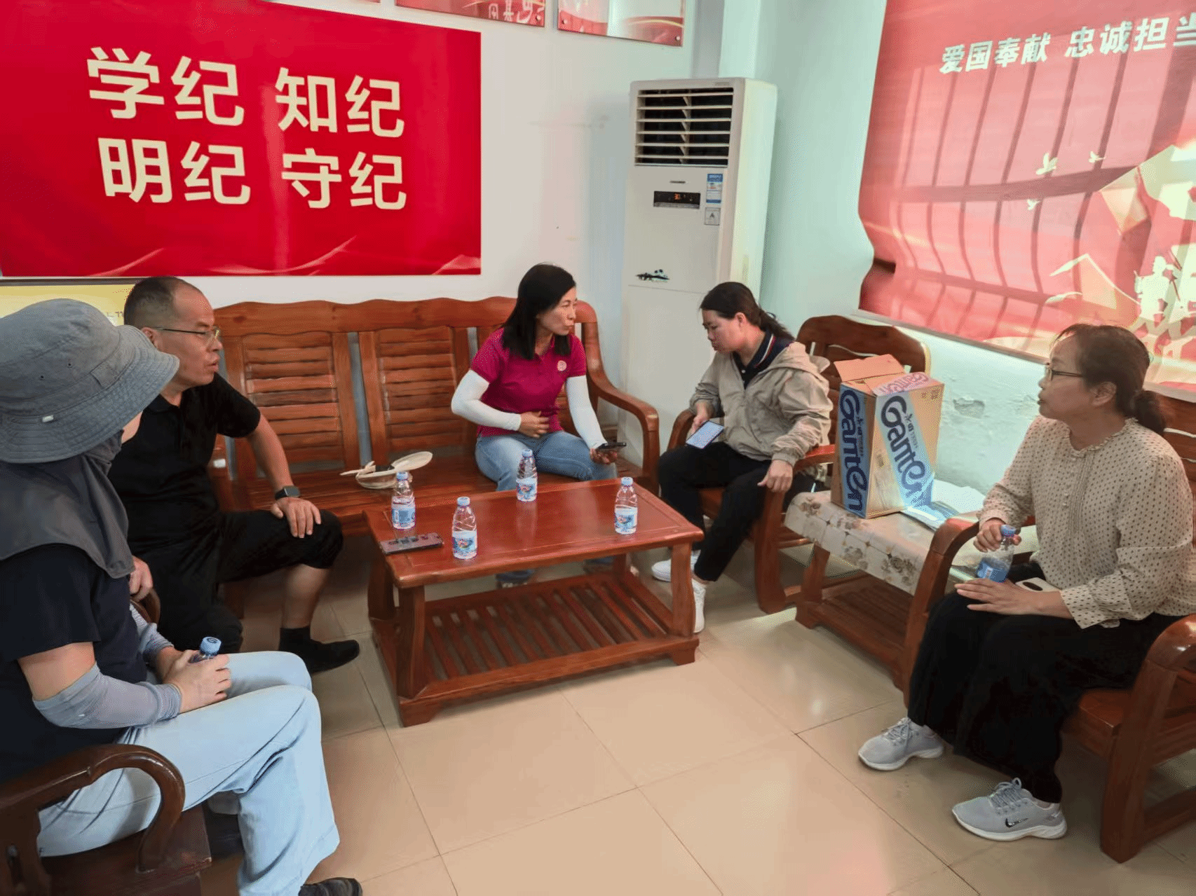 【廖葱葱(左一)到民众街道义仓村参加环境改造工作协调会】