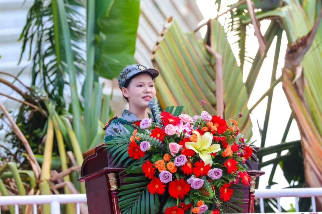 三亚航院校长杨涵涛教授以 “匠艺淬成星汉志,赤心照亮自贸程” 为主题发表讲话。他首先肯定军训意义,欢迎新生加入,介绍三亚航院20年发展历程及加入辽宁方大集团后的暖心政策,强调学校是 “有实力、有前景、有温度” 的大学 —— 是海南唯一获评 “双高” 的民办院校,“专升本” 工作推进中,具备校企合作等优势,能助力学生精准就业,且依托海南自贸港发展带来广阔平台;接着从 “善技为民”“精益求精”“兼济天下” 三方面结合校友事例阐述职业教育使命,鼓励新生以优秀校友为榜样,抓住海南自贸港全岛封关机遇成长,最后感谢辽宁方大集团的支持,寄语新生成为时代英才。