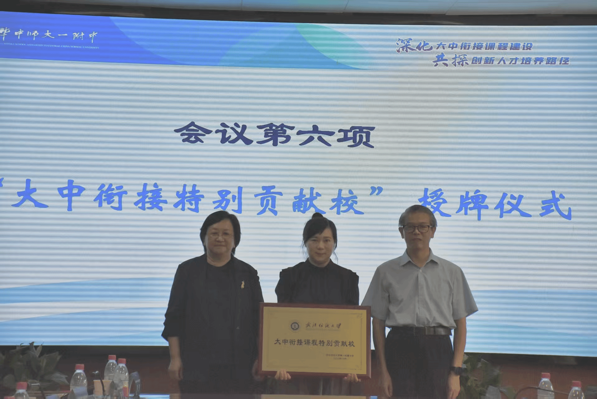最后,华师一附中党委书记杨国红、校长徐惠为武汉纺织大学颁发“大中衔接课程建设特别贡献奖”。学校本科生院招生工作相关负责人表示,学校将以此次论坛为契机,深化与华师一附中的合作,持续优化大中衔接课程体系,通过课程共建、研学实践等形式,为培养具有学科兴趣与创新潜力的优秀学子提供“纺大方案”。