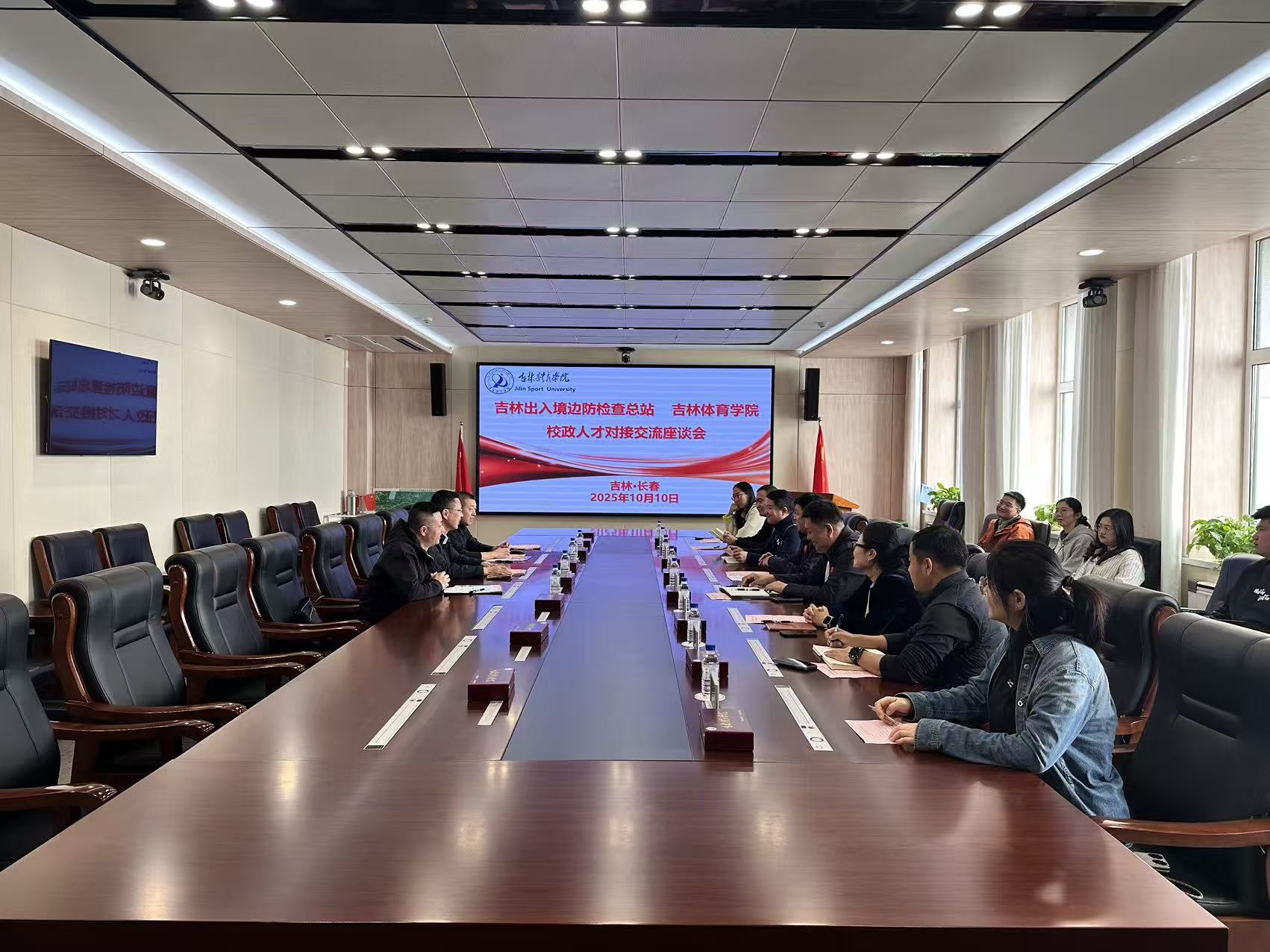 10月10日上午,吉林出入境边防检查总站党委委员、政治处主任林华志一行4人莅临我校,就校政人才对接开展交流座谈。副校长周正主持会议。招生就业处、相关学院负责人及2026届毕业生辅导员参会。