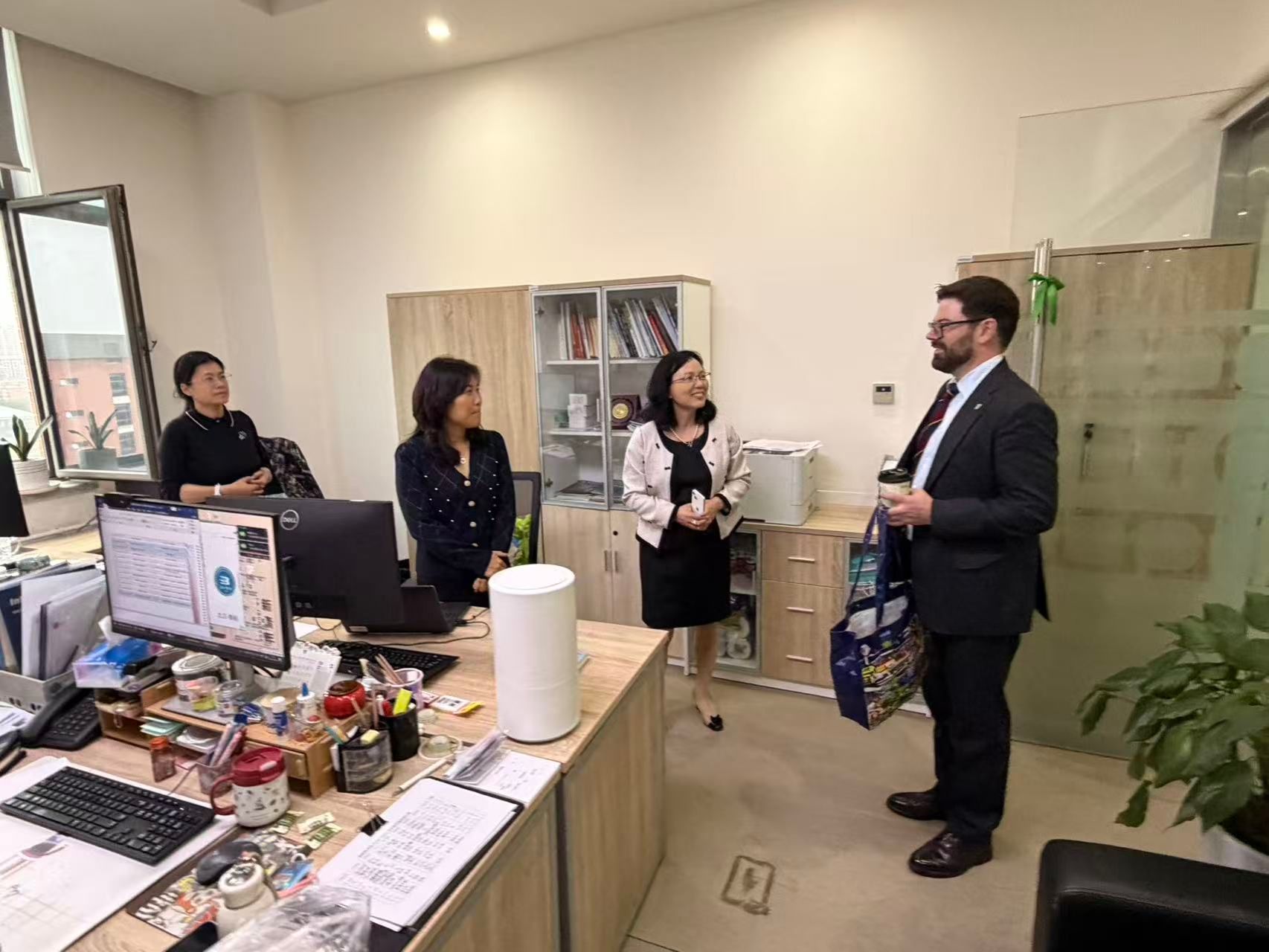 10月10日下午,爱尔兰国立都柏林大学(UCD)经济学院院长Benjamin Elsner访问北京工业大学北京-都柏林国际学院。北京-都柏林国际学院院长吴文英、学院党委副书记张波、副院长孙恩昌及相关工作人员接待来宾,并组织开展了系列交流活动。