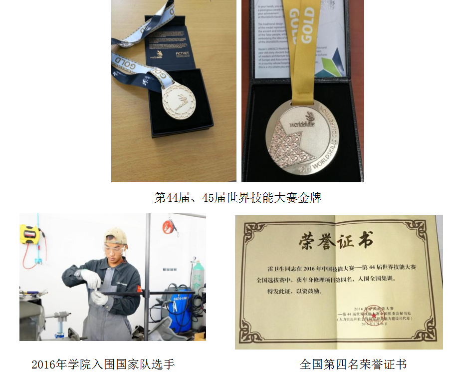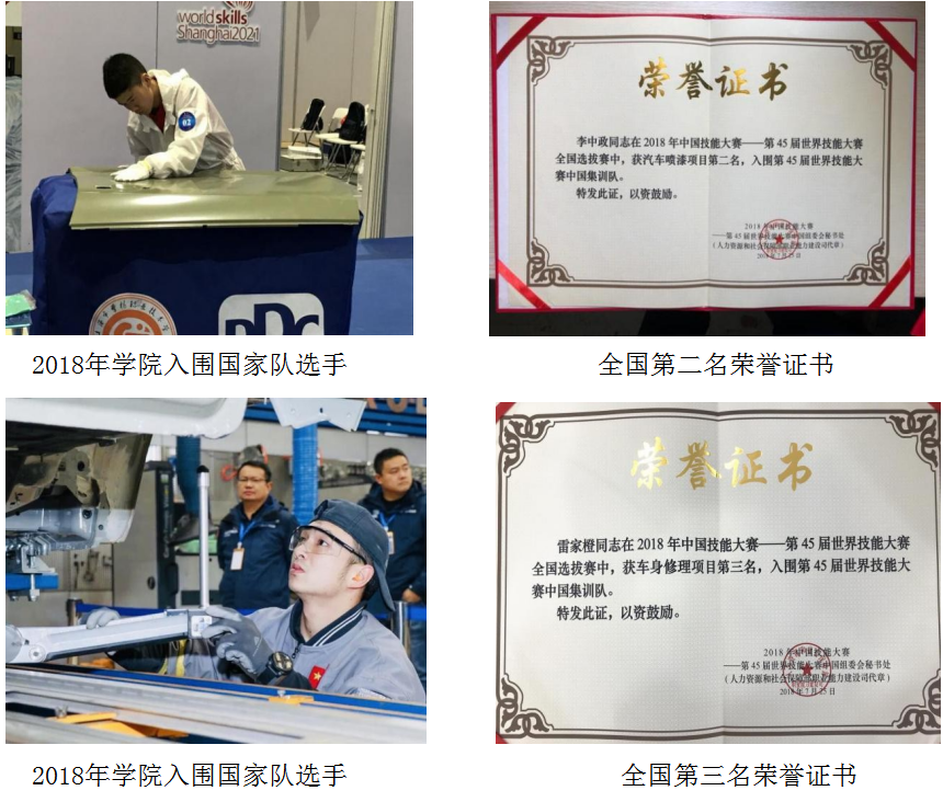申报落地云南省首个世界技能大赛国家级集训基地,共同参与培养出两位世界冠军,为国家赢得了荣誉。此外,还申报成功两个省级集训基地,连续6年承担三届云南省世界技能大赛汽车技术、车身修理和汽车喷漆三个项目的集训选拔工作,指导本专业选手蝉联三届该赛项云南省第一名,并代表云南省参加第44届世界技能大赛全国选拔赛获得车身修理项目全国第四名、汽车喷漆赛项全国第七名,参加第45届全国选拔赛获得车身修理项目全国第三名、汽车喷漆赛项全国第二名、汽车技术项目全国第八名,2020年参加第一届全国职业技能大赛在车身修理项目上获得铜牌,实现了云南省职业院校在该赛事上奖牌零的突破。此外,本专业师生在国家级及省级各类技能比赛中获得一等奖10项、二等奖20项、三等奖8项。