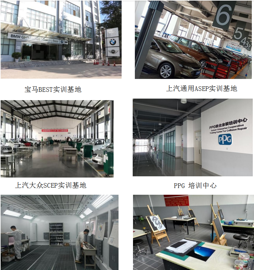 本专业教学实训条件及资源丰富,实训教学场地总面积1万余平米,硬件设施 设备投入7千余万元,包括专业实训室8个,以及与宝马、保时捷、奥迪、上汽通用、上汽通用五菱、上汽大众、一汽大众、德国博世、东风日产、北京现代、东风标致雪铁龙、BASF、PPG共建的校企合作校内实训基地13个,以及各品牌对应的省内外校外实践基地。开办各类品牌定向班,实现企业资源与学校资源共享,教学内容、教学 标准、教学模式与企业同步,毕业时多证并举,学校毕业与就业无缝对接,将产教融 合、校企合作、工学结合、知行合一落到实处。