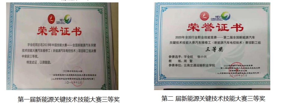 学院新能源汽车技术专业坚持走”产、学、研、赛“相融合的全面综合发展路线,在各 级领导的大力关心支持下,专业师生凝心聚力,走出一条特色鲜明之路。尤其在高技能人才 队伍的建设培养上取得了瞩目成绩。申报落地云南省新能源汽车维护技术服务推广平台,低 压电工作业证考试培训点。此外,还成功举办18年比亚迪汽车新能源服务技能大赛全国总结 赛,云南省新能源汽车技术选拔赛等赛项。积极参与新能源汽车行业、省级、国家级各项赛 事并获得优异成绩。精诚杯—2017比亚迪汽车新能源服务技能大赛全国三等奖,精诚杯— 2018比亚迪汽车新能源服务技能大赛全国第二名,第一届新能源汽车关键技术技能大赛国赛 三等奖,第二届新能源技术技能大赛云南选拔赛二等级,第二届新能源汽车技术技能大赛国 赛三等奖,“交通杯”云南省新能源技术一等奖等各荣誉。