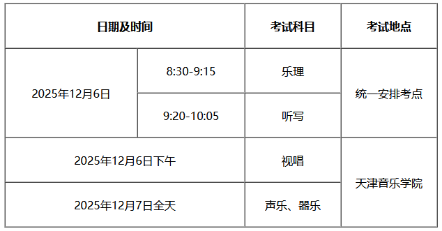 舞蹈类市级统考考试时间为2025年12月7日,考试地点在天津师范大学,考试形式为面试。具体考试时间由市教育招生考试院统一安排,并在考生准考证上明确。