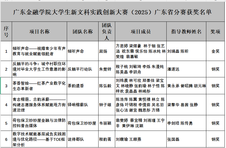 在广东省2025年大学生新文科实践创新大赛现场决赛中,我校学生团队凭借出色表现斩获1项金奖、5项铜奖的优异成绩。此次大赛于10月12日在华南农业大学举行,共有来自39所高校的219个项目进入最终答辩环节,经过激烈角逐,我校6支入围决赛的队伍全部获奖,展现了广金学子在新文科领域的创新实力。