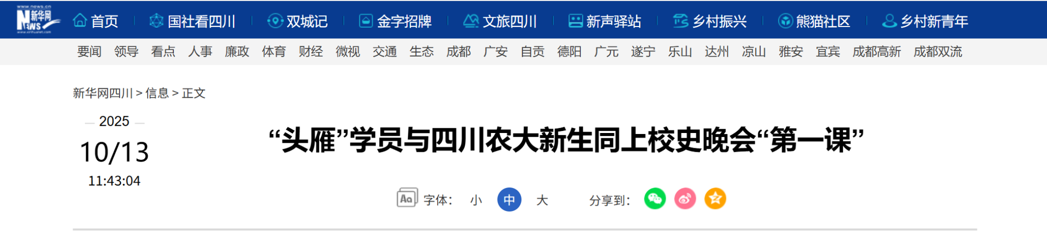 “这不仅是一场视听盛宴,更是一堂深刻的思政课和情怀课。”“头雁”二期二班学员王燕表示,“离场时,钟声仍在耳畔回响,胸中激荡的是作为川农‘头雁’的骄傲与责任。我们将以奋斗为笔,在家乡的田野上续写川农新的百年华章。”