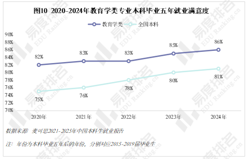 教育学类专业毕业五年就业满意度在各专业类中一直排名前列,这可以说是该专业类为数不多的优点。教育学类专业毕业生大多进入幼儿园或小学担任教职工作,工作环境较好,除了正常的节假日外每年还有寒暑假,这对于追求工作稳定的人来说吸引力十足,但缺点也十分明显,薪资特别低。
