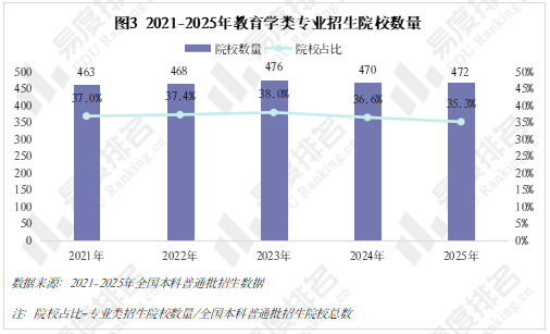 三、教育学类招生院校进入缩减趋势