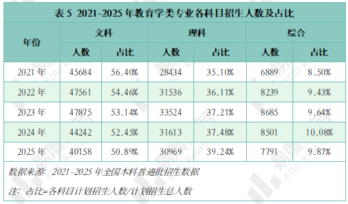 五、教育学类专业招生转向文理均衡