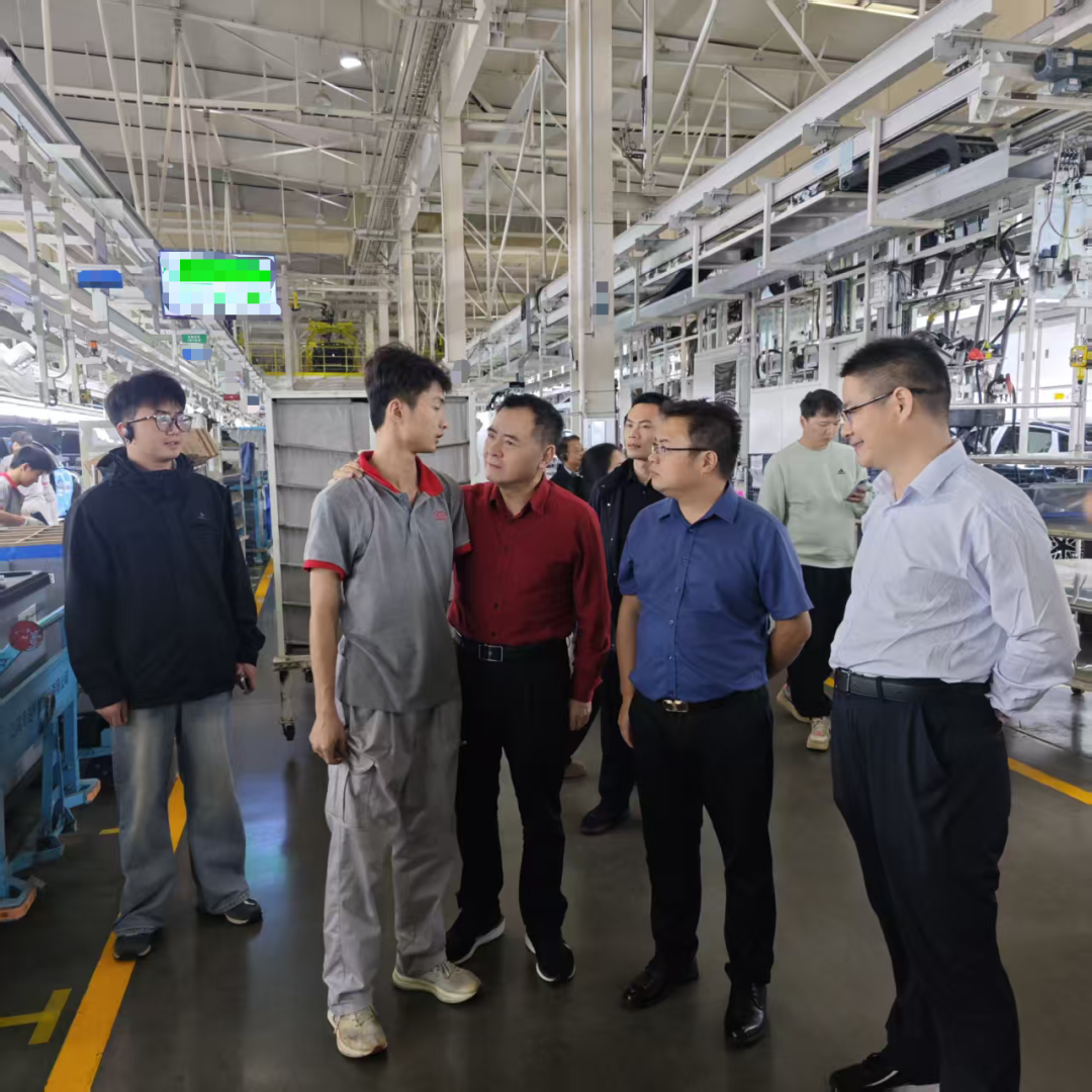 此次交流活动内容丰富、安排紧凑。13日下午,刘向葵、张文兵一行在奇瑞相关负责人的陪同下,先后参观了奇瑞智造一工厂和三工厂,深入了解了奇瑞在智能制造、技术创新及人才培养等方面的先进经验。学院领导还深入工厂一线,亲切慰问我校正在参与工学交替的学生,详细了解他们的工作和生活情况,鼓励大家珍惜实践机会,努力提升技能水平。参观过程中,双方还就学生实习就业、岗位需求、技能标准等内容进行了深入交流。