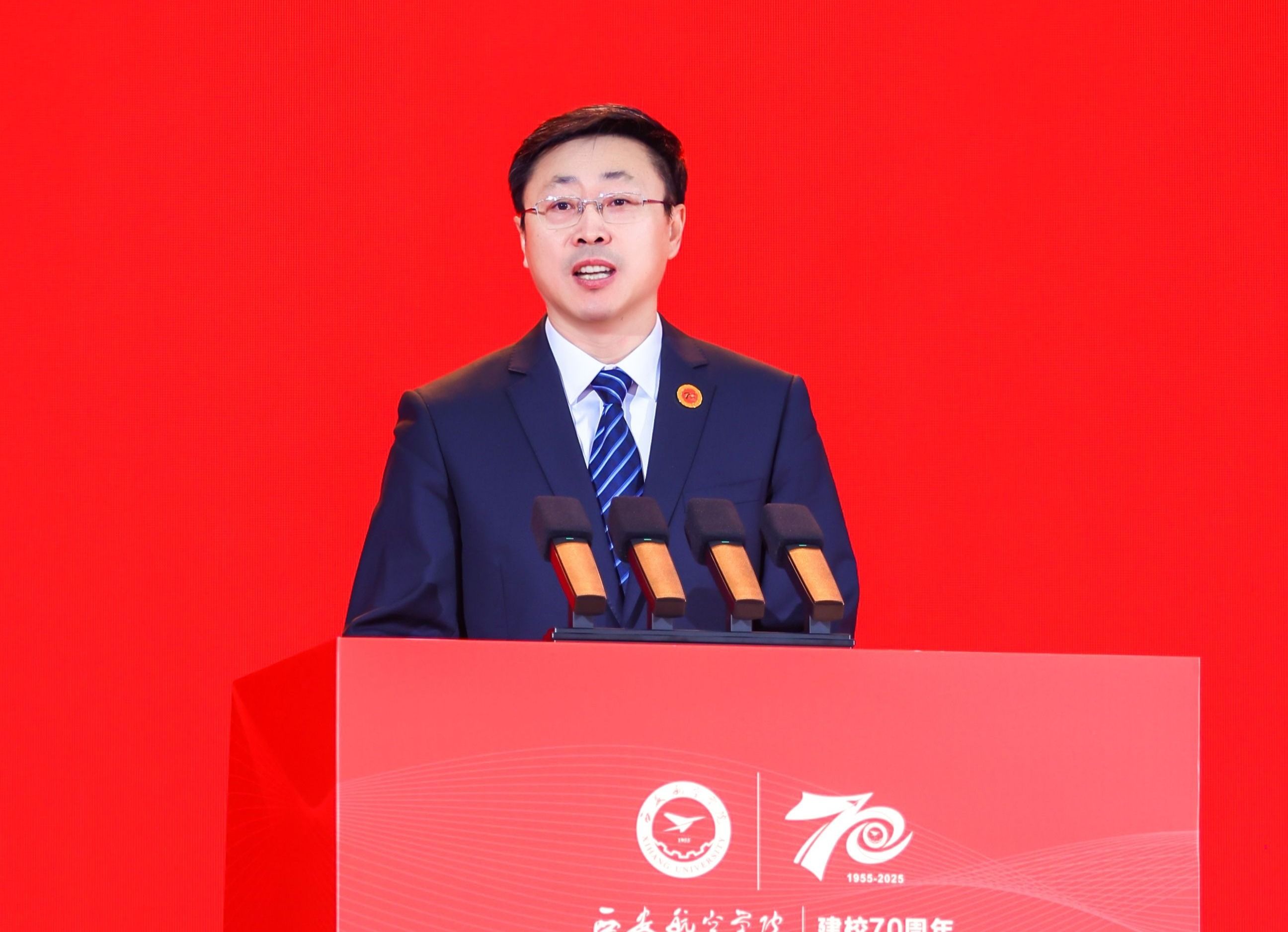 李钧代表陕西省人民政府向西安航空学院建校70周年表示热烈祝贺,对关心支持学校建设、陕西发展的朋友们表示衷心感谢。他指出,西安航空学院建校70年来,始终传承发扬航空报国精神,相继培养了10万余名高素质应用型专门人才,涌现出一大批服务国家战略、引领航空产业、助推低空经济的领军人物和技术精英,许多重要成果应用在航空工业、国防装备和国民经济的关键领域,为建设教育强省和航空强省、培育发展新质生产力作出了西航贡献。他表示,省上将一如既往地支持学校建设发展。他强调,面向未来,学校要全面贯彻党的教育方针,发扬优良传统,强化人才培养,突出内涵发展,提升服务能力,早日建成省内一流、全国知名、航空特色鲜明的高水平应用型大学。