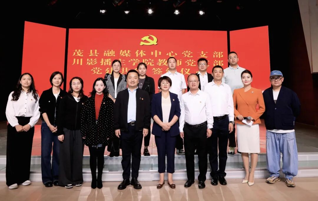 签约仪式上,中共茂县县委常委、宣传部部长曾云红首先致辞,她指出,本次共建是贯彻落实习近平总书记关于加强基层党建工作重要指示精神的具体实践,也是推动媒体融合发展、实现优势互补、促进共同进步的重要举措。要求双方坚持党建引领,推动党建与业务同向发力。随后,双方党组织代表分别深入阐释了结对共建的政治意义与合作方向。四川电影电视学院播音主持学院党委副书记、纪委书记、教工第三党支部书记张亮强调,结对共建是学院基层党组织主动融入地方发展大局的重要实践,将坚持“为党育人、为国育才”,推动“党建+传媒+服务”深度融合,把党建优势转化为服务地方高质量发展的实际力量。茂县融媒体中心党支部书记、主任余斌表示,将以此次共建为契机,整合院地资源,在人才培养、内容创作、技术支持等方面开展务实合作,共同提升地方融媒体传播力和服务力。