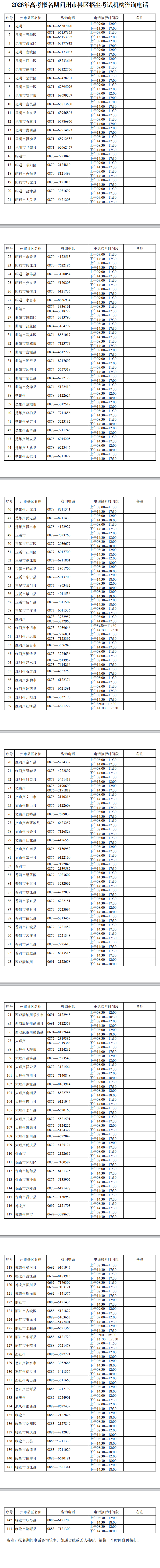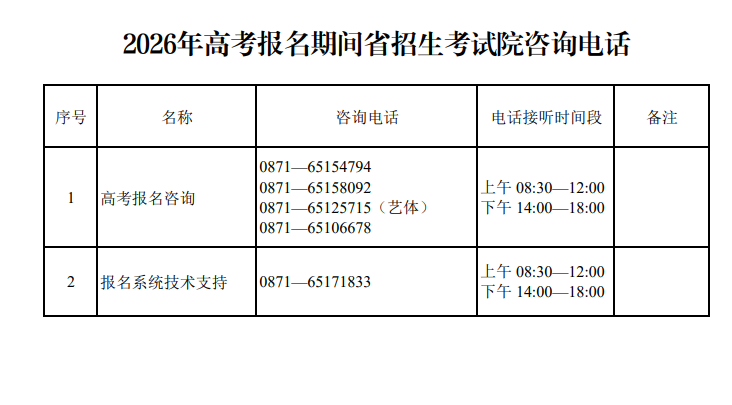 云南省2026年高考报名期间州市县区招生考试机构咨询电话