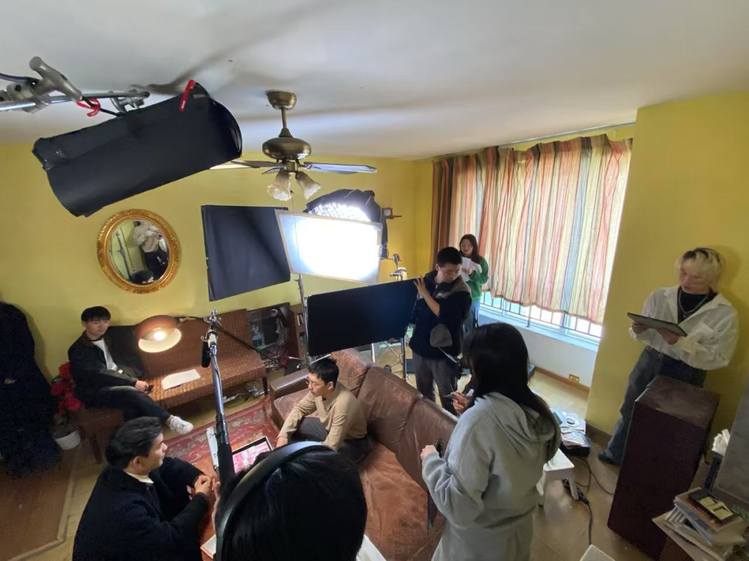 广告是一把钥匙,为我开启无数大门。记得第一次颤抖着推开微电影试镜室的门时,阳光正斜斜掠过广告系学姐的眉睫,我误打误撞地成了《爱在日落山海间》的男主演。记得第一次推开绍兴西小路82的木门,生涩的技法,混乱的流程,但与团队成员一起留下了弥足珍贵的广告片作品《青丝如思》。记得《风筝远去几华里》(导演作品)中男女主追逐着风筝掠过长空、《群山回唱》(导演作品)中男女主拥簇在余姚四明山的红衫林下,将远方群山传来的回响揉进脑海,忽然懂得梦想原来是有重量的,也忽然懂得,正是因为我们都有勇气推开这一扇又一扇的门,让同样热爱的我们聚在这里。