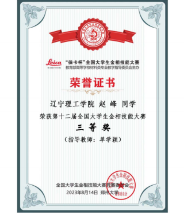 马一程同学自从辽宁理工学院毕业后,以总分360分的成绩考入沈阳工业大学,成为材料工程专业硕士。他在研究生生活中积极参加各类教学演讲,努力学习材料方面知识并且积极参加导师课题组的工作,努力发表SCI论文,他十分珍惜学习机会,希望在材料工程方向一直进步。