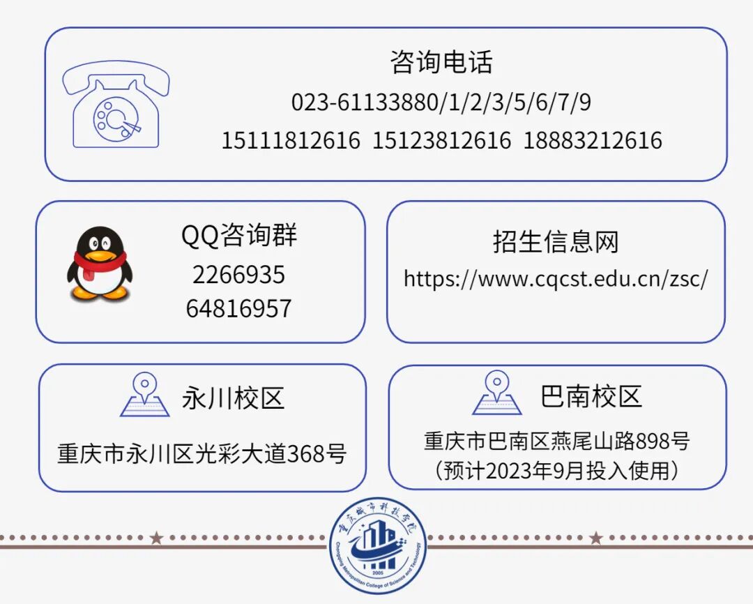 各位考生及家长: 2023年招生录取期间,学校使用永川校区二十一号宿舍楼录取现场进行录取。为方便与广大考生及家长联系,核对考生信息等,特增加以下座机号段(重庆永川校区号段):023-4922**00——023-4922**99。