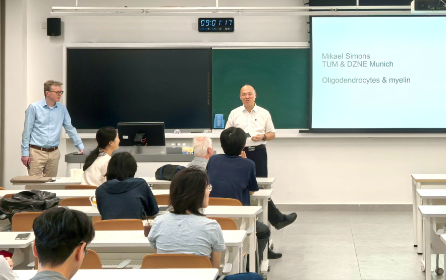 近日,由深圳理工大学Bio-X国际研究院、生命健康学院与中国科学院深圳先进技术研究院脑研究所共同举办的“胶质细胞生理与病理功能国际研讨会”在深圳理工大学举行。研讨会邀请了德国科学院院士、哥廷根大学医学中心神经病学主任Mathias Bähr教授,德国科学院院士、慕尼黑神经退行疾病研究中心主任Mikael Simons教授,以及德国分子医学研究中心终身教授Michael Bader三位国际一流学者来访交流。与会专家围绕神经系统疾病与脑功能调控的重大科学问题,分享了多场高水平报告,涵盖了帕金森病的分子机制、髓鞘病理与神经炎症,以及5-羟色胺在脑与心血管系统中的双重作用等主题,为广大师生呈现了一场学术盛宴。