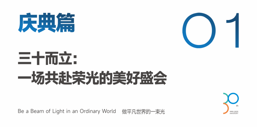 庆典大会以“光的起源”为序幕,由“辉光启幕”“微光成聚”“异彩共生”“向光而行”四大篇章串联构成,大会将特邀教育同行、海内外校友、头部企业代表等嘉宾共聚一刻。在分享与交流中,共同回顾欧亚30年来的教育探索与实践成果,见证学校在立德树人、教学改革、社会服务等多维度的卓越成就,以“而立”之姿,开启应用型大学高质量发展的新篇章,彰显创新型大学的使命与担当。