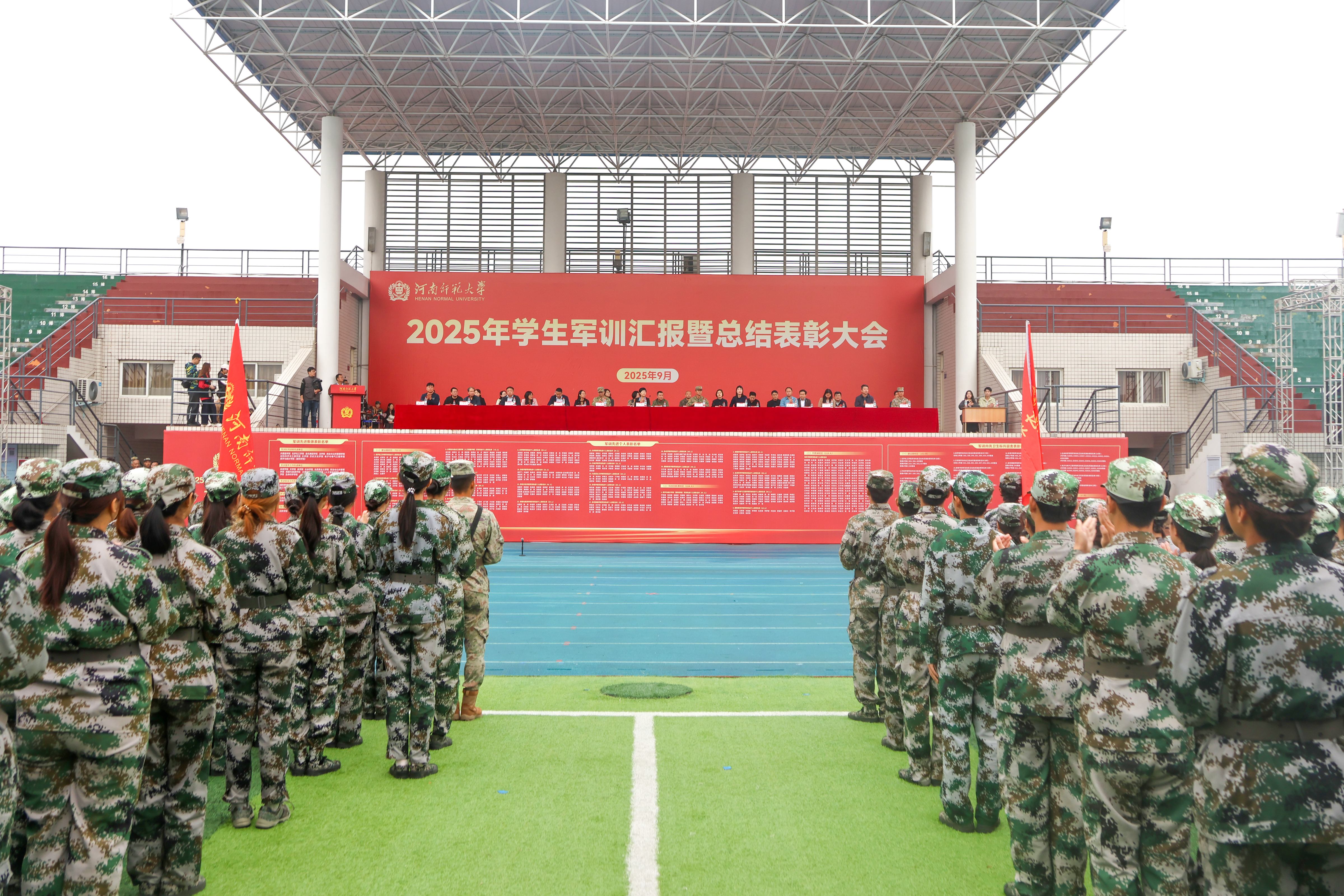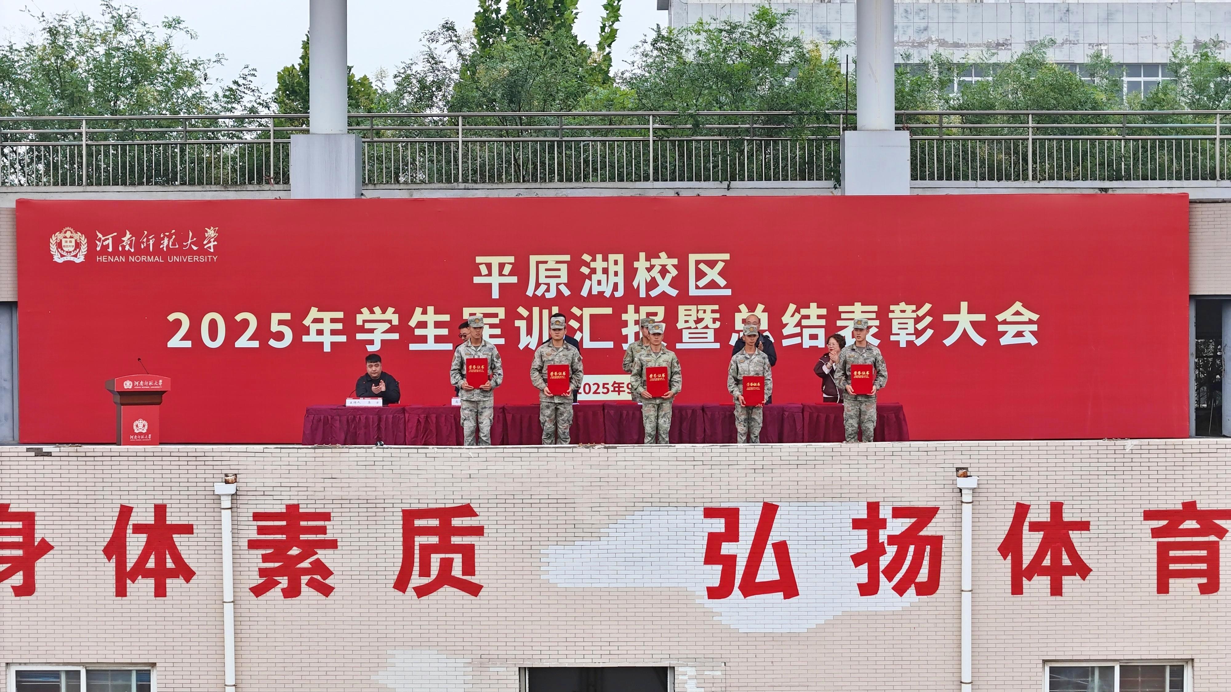 9月28日上午,我校在建设路校区、科技创新港校区、平原湖校区同步举行2025年学生军训汇报暨总结表彰大会。校领导秦法跃、宋晔、苗雨,帮训部队首长、32150部队上校副旅长郝鹏元,牧野区人武部上校部长郝冉,各校区帮训部队领导,军训工作专项工作组成员,全体帮训教官,各院(部)党委(党总支)副书记、2025级全体辅导员和本科生分别在一校三区参会。各校区大会分别由党委学工部部长葛照金、科技创新港综管办主任陈勇、软件学院党委副书记原方主持。