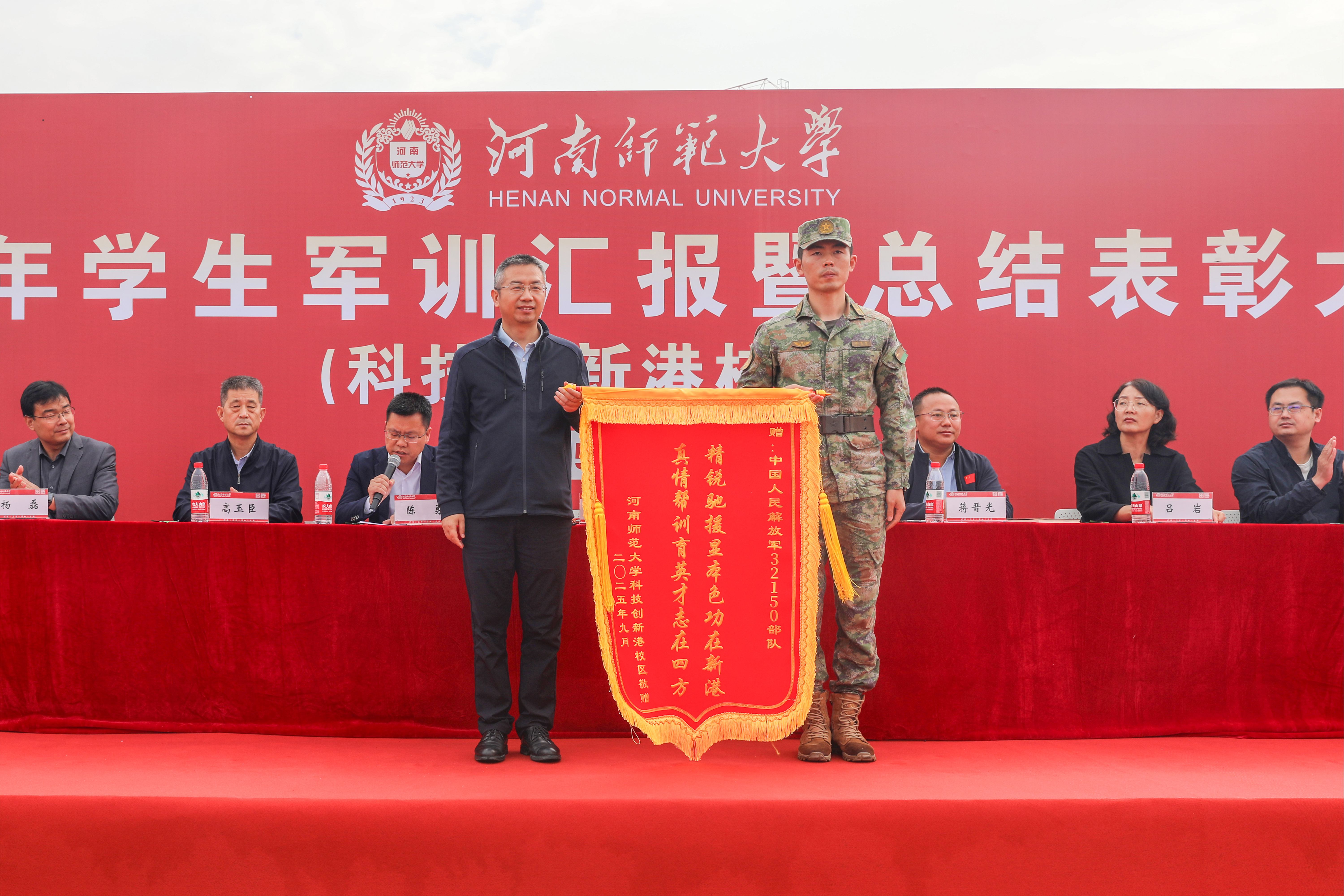会上,校领导分别向中国人民解放军32150部队赠送锦旗。校党委常委、宣传部部长孙红艳,软件学院党委书记寇玉鹏,党委学工部副部长蒋晋光分别宣读了军训表彰决定,与会领导为获奖集体和个人代表颁奖。