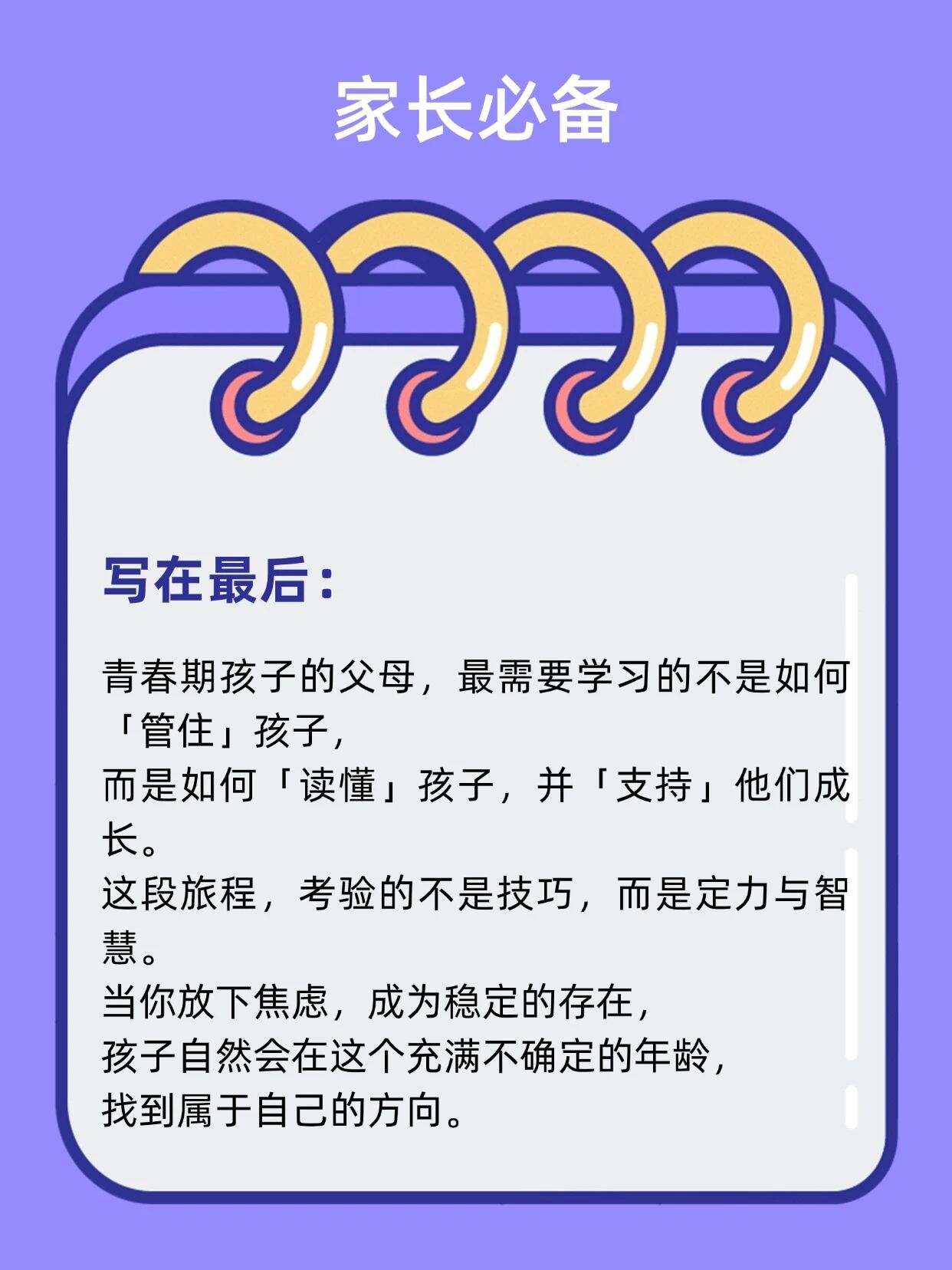 青春期,是孩子留给父母最后的机会。12到15岁,正处在心理断乳期与人格形成的关键阶段。过度控制会引发对抗,完全放手又可能导致迷失。如何把握管教的尺度?这四条黄金法则,或许能为你点亮一盏灯。