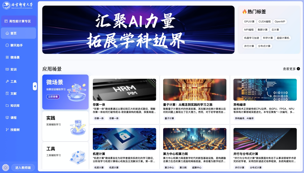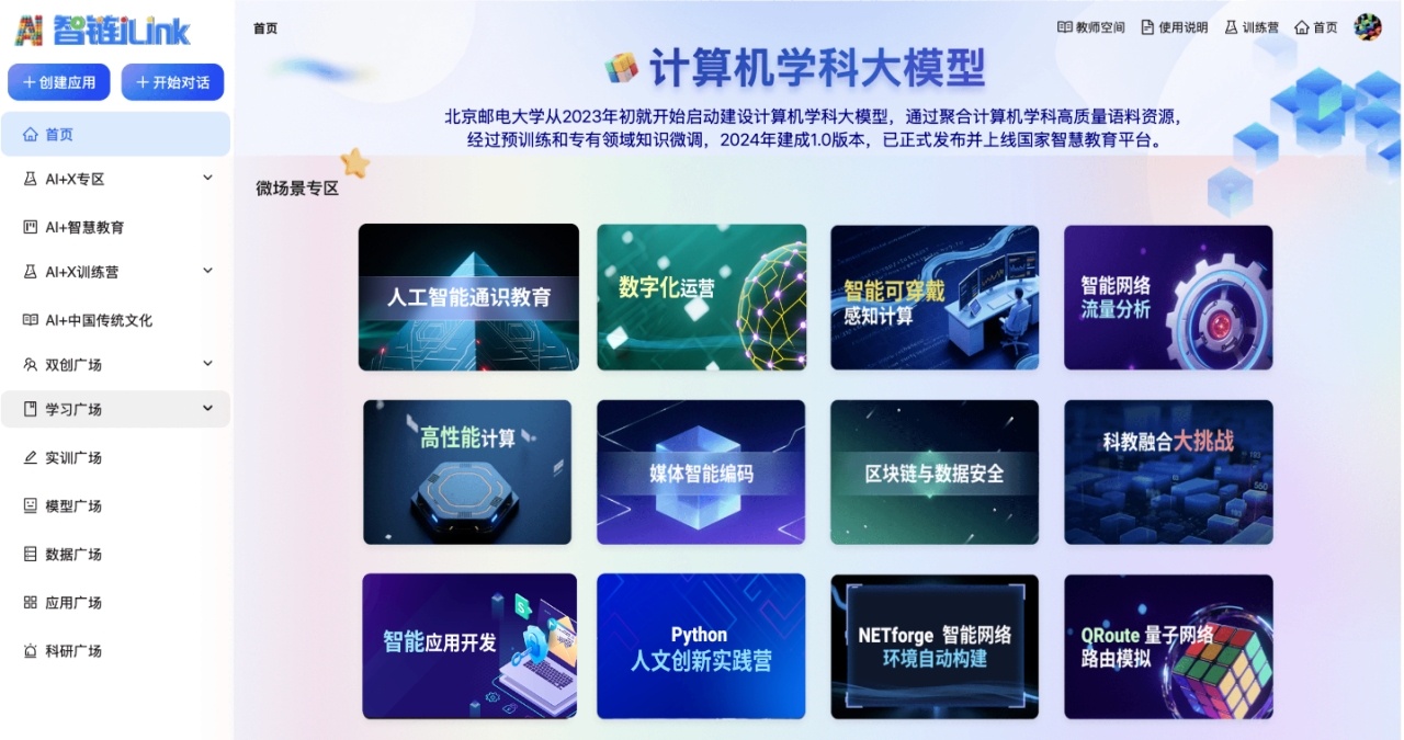 智链平台聚焦“教育可用、场景可落、能力可转”的目标导向,融合北邮自研计算机学科大模型,上线国家高等教育智慧教育平台。