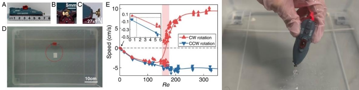 随着材料和微纳制造技术的进步,毫米级微型航行器正被广泛应用于医疗、环境、工业等领域,如在血液、粘液或狭窄管道等环境。这项研究打破了人们以往只在高或低雷诺数下研究螺旋桨的传统认识,揭示了中等雷诺数流体中独特的运动规律。这一发现为未来微型机器人在复杂流体环境中的精准运动提供了重要的理论基础,也为跨领域合作和实际应用打开了新的方向。