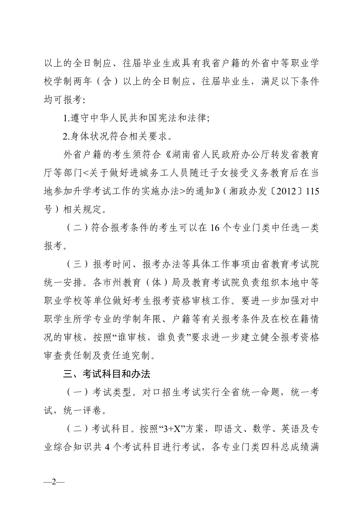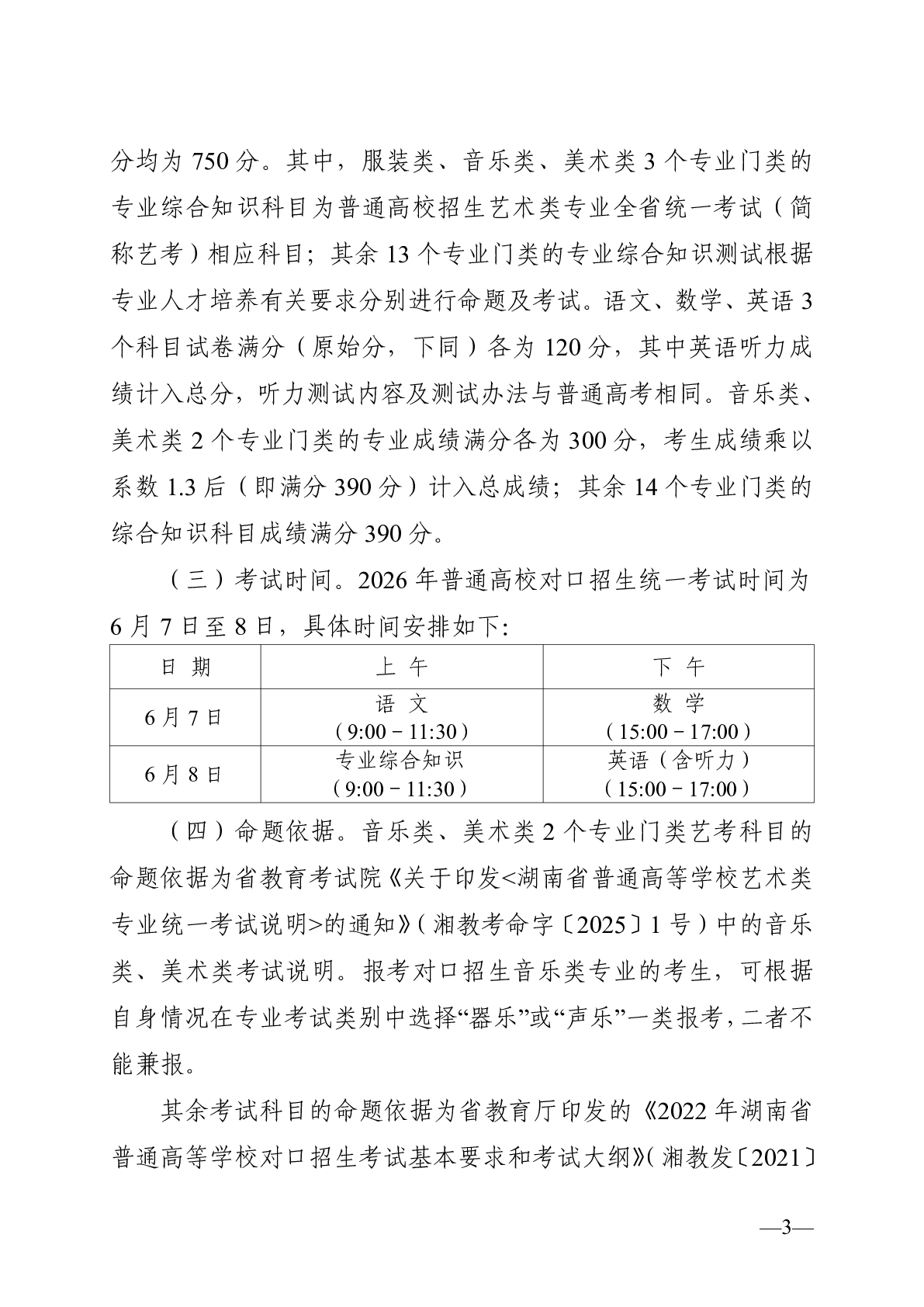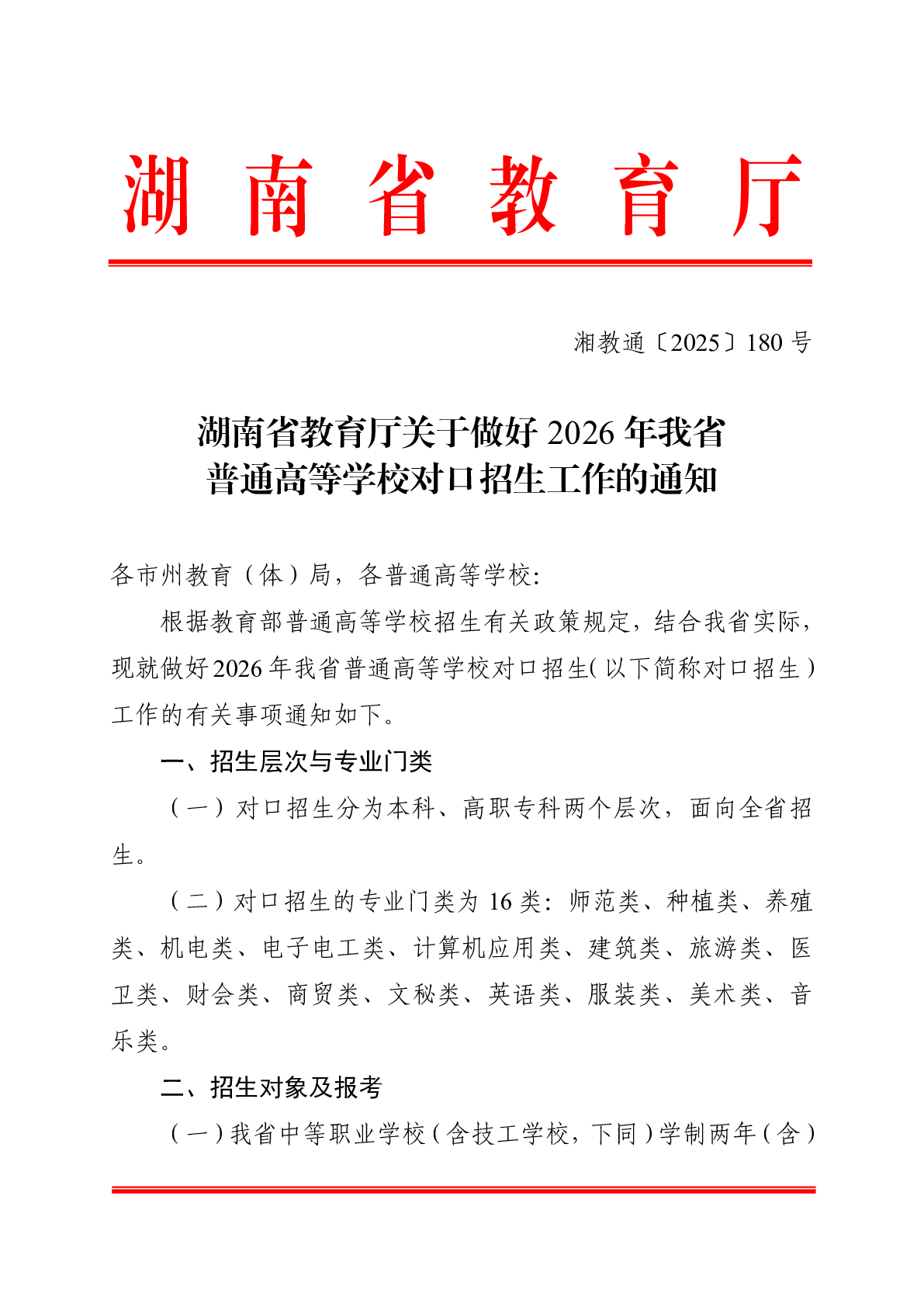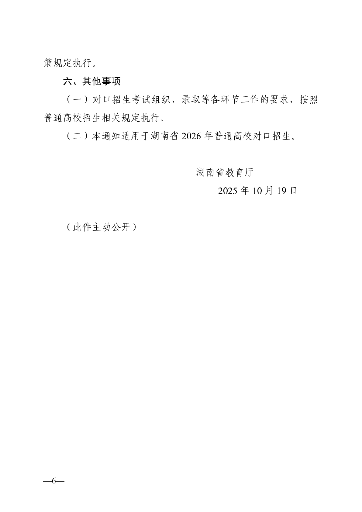 湖南省教育厅关于做好 2026 年我省 普通高等学校对口招生工作的通知