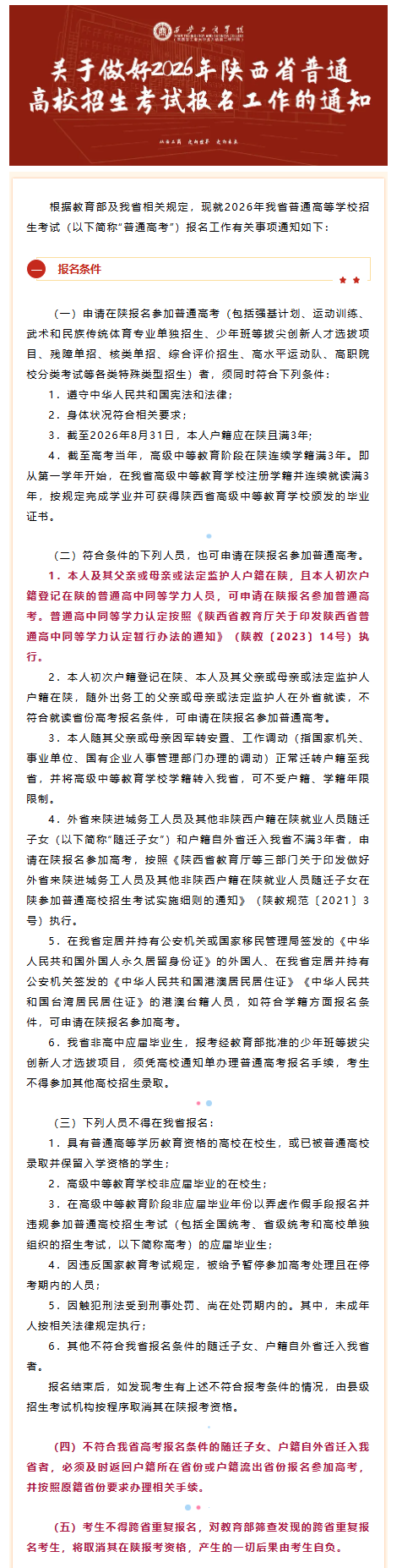 关于做好2026年陕西省普通高校招生考试报名工作的通知