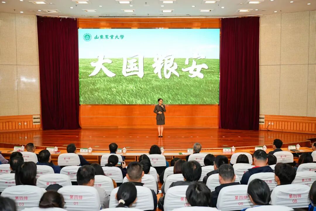 “请大家将右手轻轻放在胃部,感受此刻平稳的呼吸与温暖的饱足。但就在此刻,全球仍有近8亿人正在经历着胃酸灼烧般的饥饿绞痛。”“大家知道要想保障1人1年的温饱需求需要多少土地吗?”……10月25日,一场别开生面的“大国粮安”思政大课在山东农业大学举行,来自泰安市大中小学的教师与学生代表齐聚一堂,共同聆听了一堂融合历史回响、科技脉动与青春担当的生动课堂。