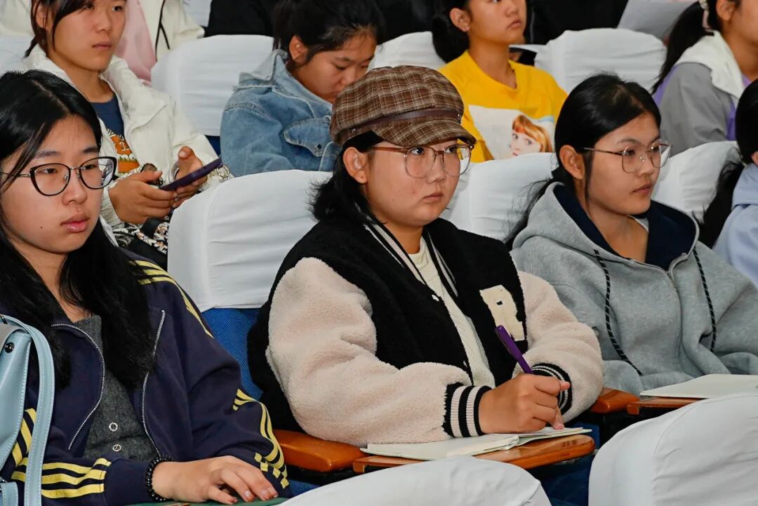 “山东农业大学的孔令让教授团队历时20年,攻克了小麦赤霉病这一世界性难题。培育的携带抗病基因的小麦品系年均可减少损失约250万吨,挽回经济损失约50亿元,显著提升了小麦产量与质量,端牢了中国饭碗。”“从余松烈、李振声、束怀瑞、于振文等老一辈科学家,到如今新一代的科研工作者、青年学生。一代代山农人用顶天立地的科研精神和扎根农村的生动实践,谱写着‘大国粮安’的壮丽篇章。”……周莹通过沙画视频与动人演讲,生动再现了学校历代师生在粮食安全领域的坚守与奋斗,深深打动了在场师生的心。