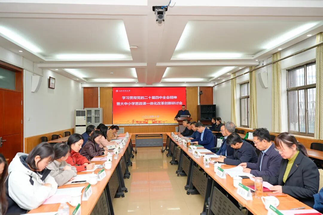 本次活动由山东农业大学和泰安市大中小学思政课一体化建设共同体主办,山东农业大学马克思主义学院和泰安市教育科学研究院承办。思政大课结束后,泰安市大中小学思政课一体化改革创新研讨会正式举行,与会领导老师围绕实施大中小学思政教师一体化培养行动计划、构建全学段衔接的课程建设体系、搭建资源共享与协同教学平台、深化教学成果培育与转化应用等重点工作进行深入研讨。
