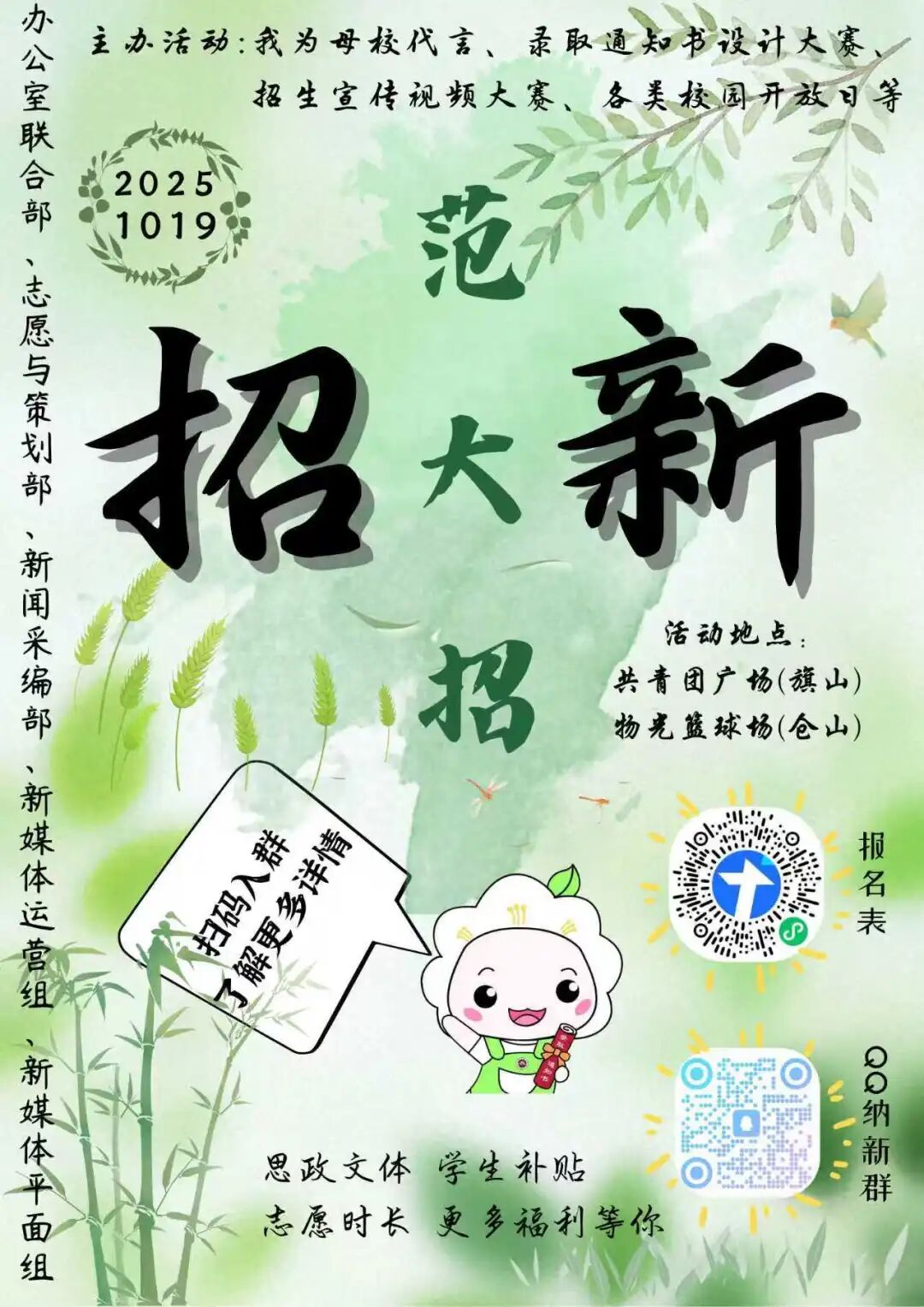 活动彩蛋:纳新当天现场参与互动,还能领取“范大招”精美奖品,解锁专属社团记忆!