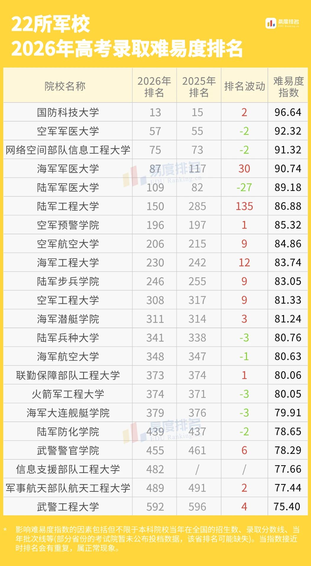高考提前批,是优秀学子们冲击梦想院校的“首战高地”,也是策略与运气并存的博弈场。它涵盖了军校、公安、师范、定向培养等多种特殊类型招生,为考生提供了区别于普通批次的独特选择。易度排名为大家整理了完整名单和最新录取难易度排名,供2026届考生参考。