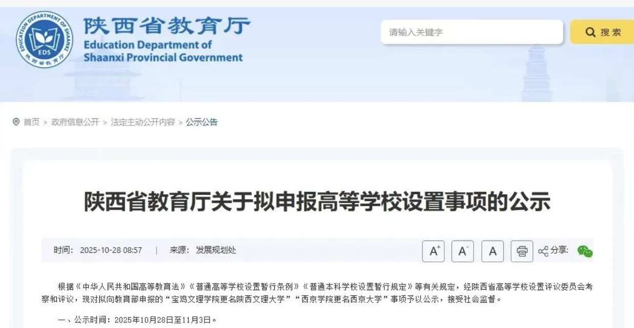 随着我国高等教育的蓬勃发展,越来越多的学院通过省公示,即将更名为大学。这不仅是学校发展的新起点,也为广大考生提供了更多选择和机会。今天,小优就来给大家详细介绍一下三所即将更名的高校:陕西文理大学、西京大学和新疆工业职业技术大学。这些学校不仅在学科建设上各有特色,而且在人才培养和就业方向上也有明确的定位。希望这些信息能帮助大家更好地做出选择,找到最适合自己的学校和专业!