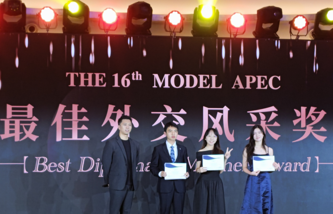 近日,2025年Model APEC全国总决赛在北京圆满落幕。四名成电学子与来自全国顶尖高校的选手同台竞技,凭借扎实的专业知识与流利的英语表达脱颖而出,全部荣获优秀奖。我校外国语学院的贺辰同学同时获得“最佳外交风采奖”。