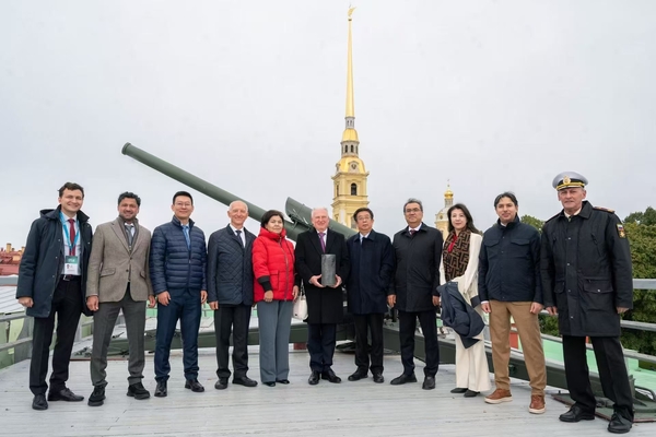活动期间,范琳琳与阿塞拜疆国立经济大学、白俄罗斯国立大学、布哈拉国立大学、中央财经大学等来自11所高校校长共同见证圣彼得堡城市最鲜明、最知名的传统仪式——彼得保罗要塞的午时礼炮,圣彼得堡国立经济大学校长伊戈尔·马克西姆采夫在彼得保罗要塞纳雷什金堡垒鸣响了午时礼炮。代表团与来自世界各地的宾客应邀参加了隆重且别具一格的该校2025级新生开学典礼,感受来自世界各地的青春力量与多国文化在列宁曾发表演讲的校园广场上碰撞交融。在参加塔利夫宫举行的庆祝圣彼得堡国立经济大学95周年校庆的学术委员会正式会上,俄罗斯联邦总理联邦委员会主席、圣彼得堡市市长、俄气董事局主席、俄铁总裁等俄罗斯政商精英分别发来贺信,祝贺该校95周年校庆。