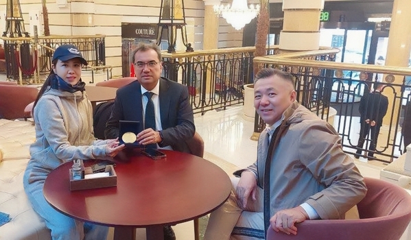 乌兹别克斯坦布哈拉国立大校长向学校赠送该校校庆95周年纪念章