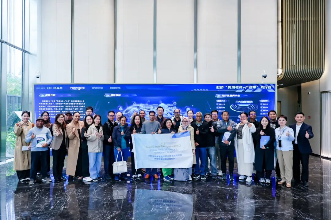 10月26日,上海对外经贸大学组织在校参加2025年世界贸易组织(WTO)亚太区域贸易政策课程(RTPC)培训的官员们赴上海青浦区开展走访参观活动。20余名官员先后走进青浦区虹桥“跨境电商+产业带”先行区、圆通速递股份有限公司与朱家角古镇,实地感受跨境贸易、物流枢纽和文旅产业发展的鲜活实践。