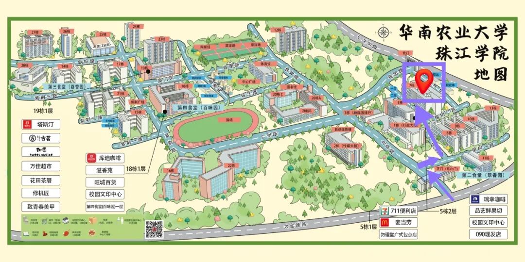 (二)公交指引:可乘从化5路。目的站:白田岗村站。下车后往大金峰路步行400米左右即可抵达华南农业大学珠江学院-东北门。