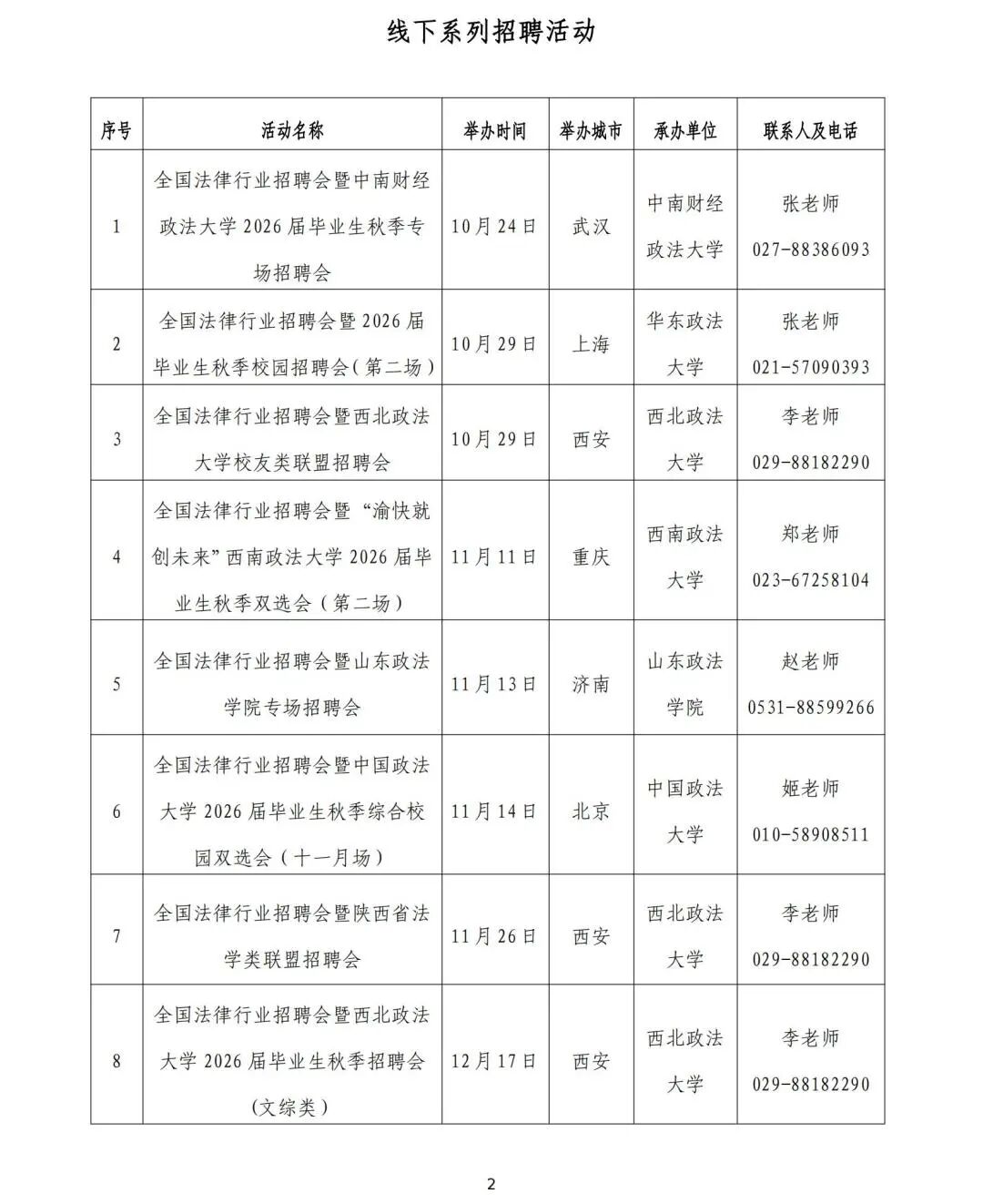 全国法律行业面向2026届高校毕业生秋季招聘活动