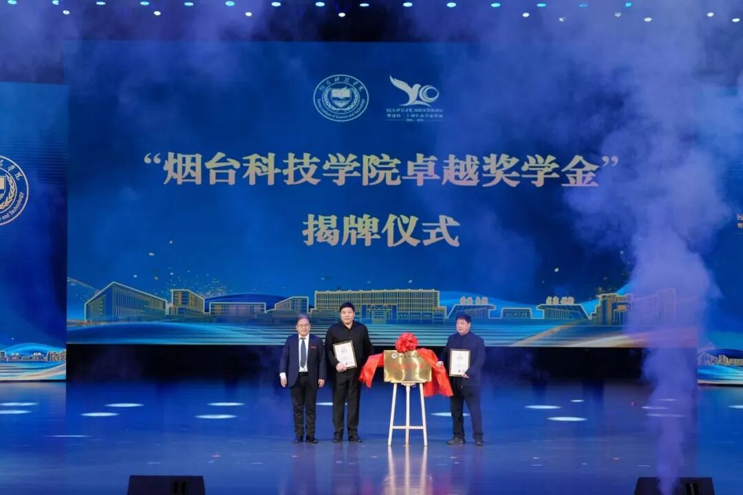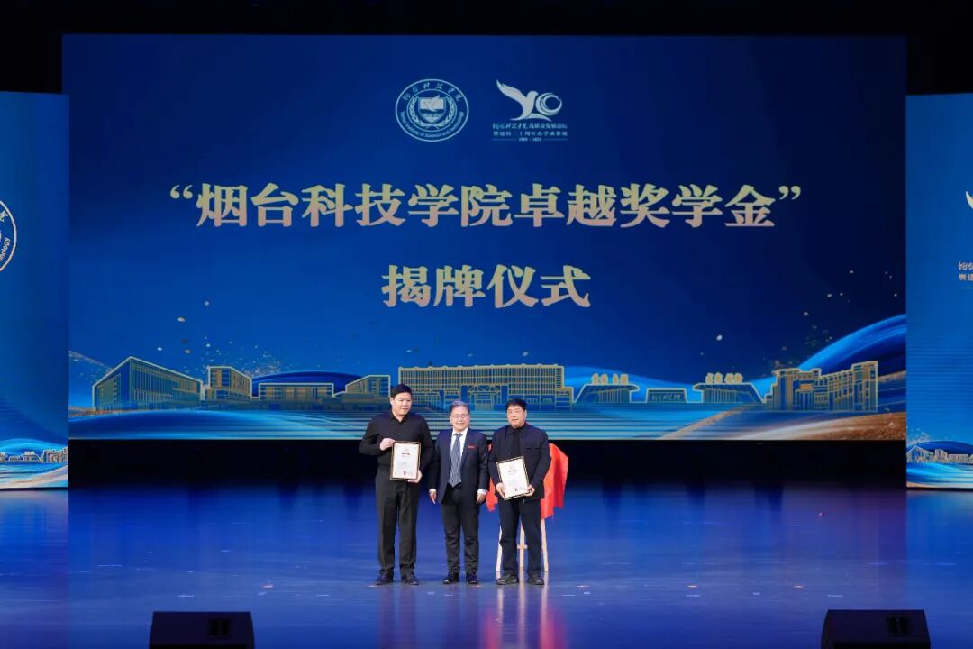 共同为“烟台科技学院卓越奖学金”揭牌庆典上迎来了“烟台科技学院卓越奖学金”的正式启航仪式。由江西两头牛建筑劳务有限公司、山东创元建设集团有限公司、江西中环建设集团有限公司、杭州新向园林景观有限公司;邱水保、欧阳庆平、孙永贞、汪伟、章华祥等企业和个人向学校捐赠奖助学金120余万元,用于奖励自立自强、品学兼优的烟科学子。既是对学校二十年教育成果的礼赞,更是为教育事业注入强劲动力。